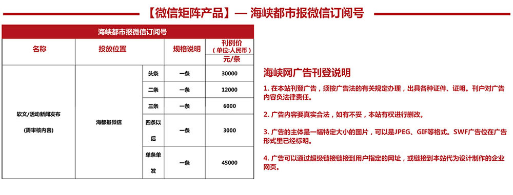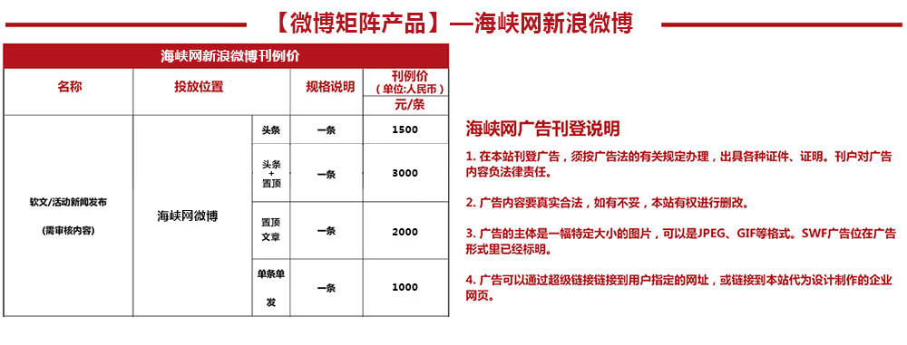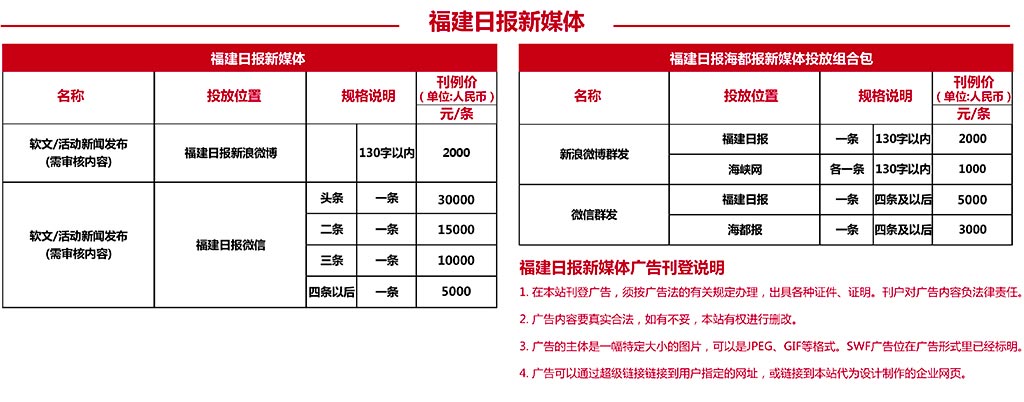 福建日?qǐng)?bào)微信、微博刊例價(jià)